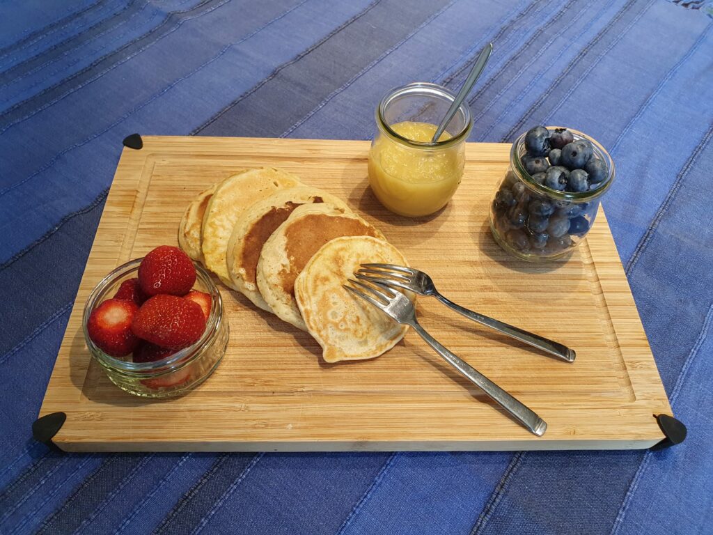 - Zum Abschluss beliebig viele Pancakes auf dem Teller garnieren und genießen!