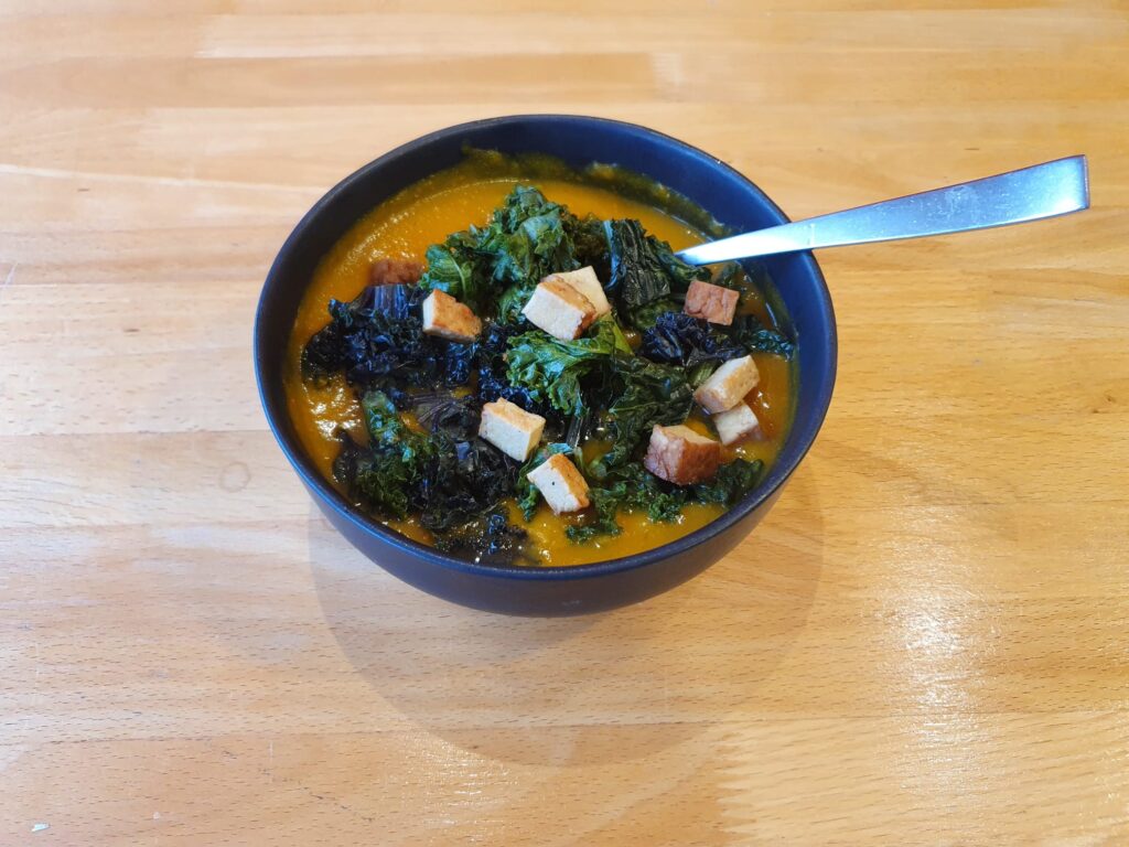 Heute gibt es einen Klassiker für die Herbst und Winterzeit. Tatsächlich gibt es Kürbissuppe in unglaublich vielen Varianten, mit Kokosmilch, Ingwer, Salbei und vielen weiteren leckeren Zutaten. Dieses Rezept ist jedoch einfach gehalten und besticht durch die Kombination mit den Toppings. Ihr benötigt nur wenige Zutaten, von denen ihr die meisten vermutlich zu Hause habt. Viel Spaß beim Ausprobieren.